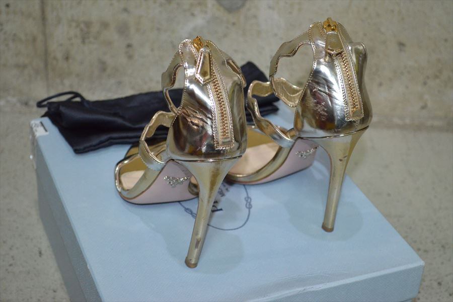 プラダ PRADA シルバー ヒール サンダル シューズ靴 37.5 D4727